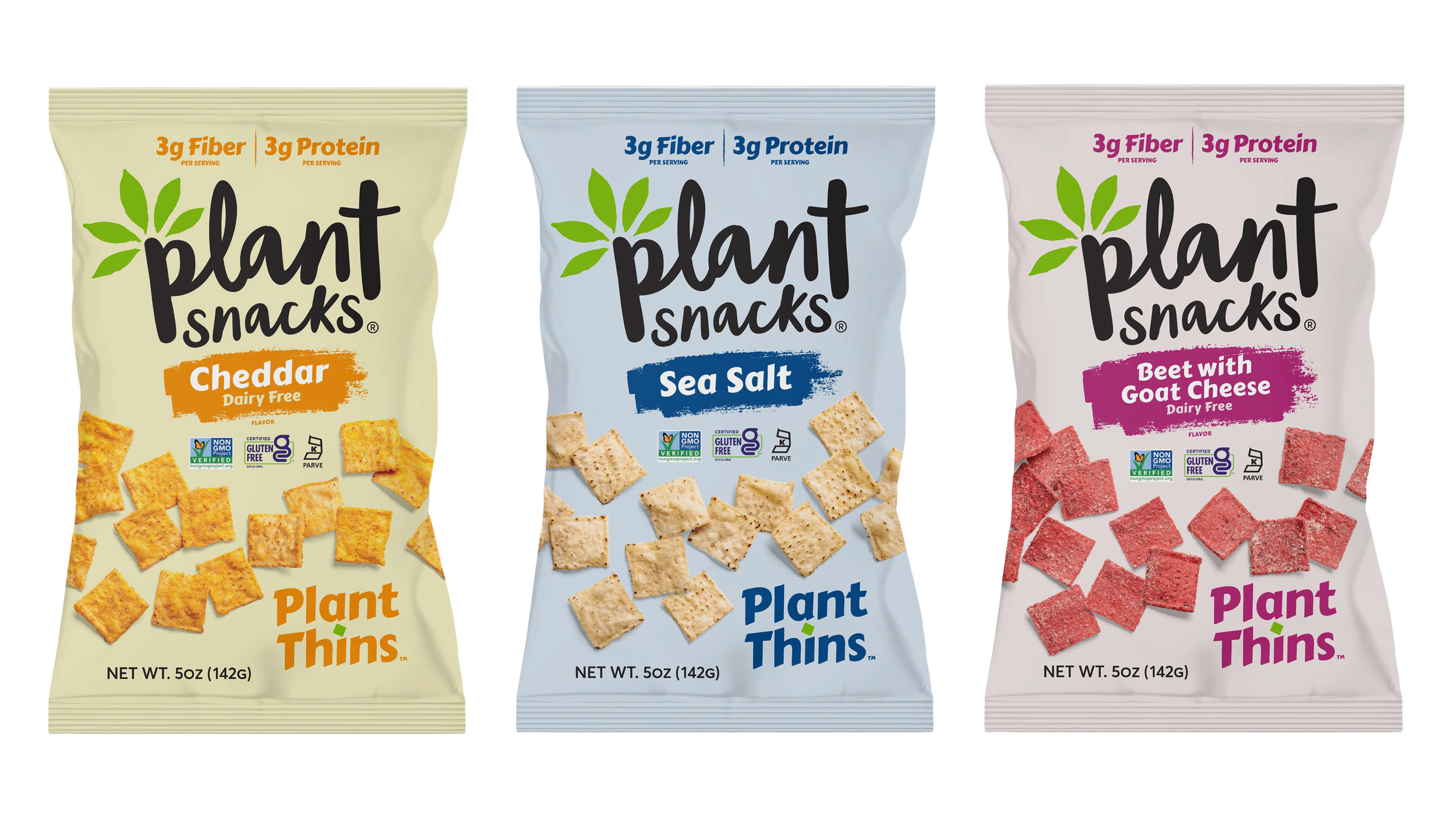 Brand identity, packaging, POS, and collateral for a grain-free snack.